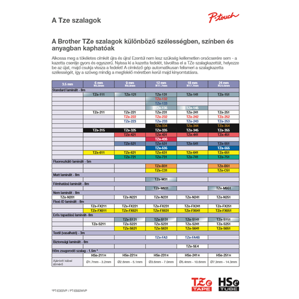 A TZe szalagkazetták gyorsan, egyszerűen cserélhetőek; számos színben, méretben és anyagban elérhetőek, ezáltal is biztosítva, hogy a P-touch készülék megfeleljen az Ön címkézési igénynek.